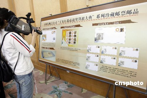 四月三日,“丁亥年黄帝故里拜祖大典”系列邮品在河南郑州正式发布。“丁亥年黄帝故里拜祖大典”系列邮品是中国集邮总公司为“丁亥年黄帝故里拜祖大典”限量发行的系列邮品,共计四大系列十二种邮品。具有极高的纪念意义和收藏价值。中新社发 慎重 摄