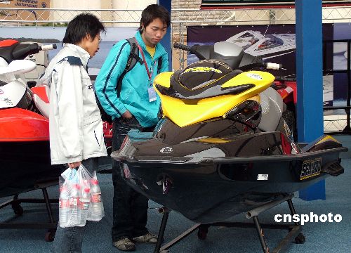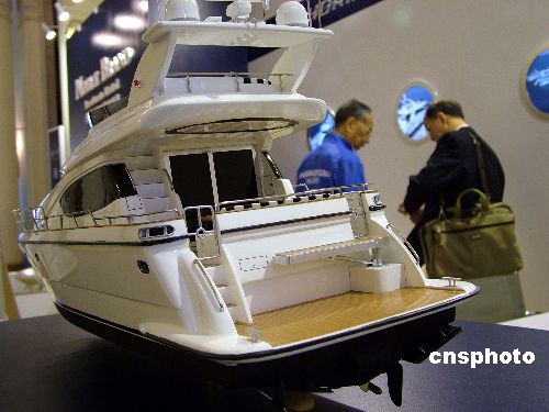 4月5日,亚洲地区最大规模、最多国际品牌参与的休闲船艇盛会——2007中国(上海)国际游艇展在上海开幕。近350家游艇行业展商为国内外观众呈献了一场缤纷多彩的游艇秀。本次游艇展共有70余艘,比上届多出20多艘。优雅高贵的豪华游艇和活泼动感的运动船各占半壁江山。中新社发 绍常 摄