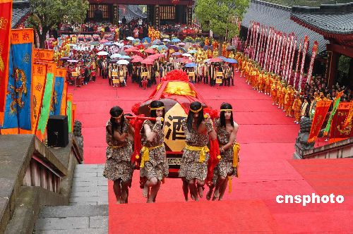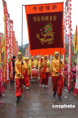 4月5日上午,丁亥(2007)年中国仙都民祭轩辕黄帝大典在浙江仙都黄帝祠宇举行,海内外数千炎黄子孙以传统仪式缅怀中华民族的人文始祖——轩辕黄帝。中新社发 宋健浩 摄