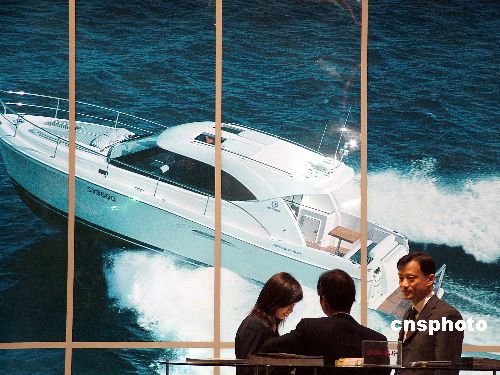 4月8日,2007中国(上海)国际游艇展在上海展览中心闭幕。据不完全统计,展览4天期间,共有逾23000人次前往展会现场参观,至少有近10艘数百万元的“重量级”游艇找到买家,一艘售价为5000万元的最豪华游艇也已被一买家相中。中新社发 绍常 摄