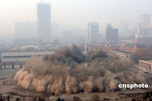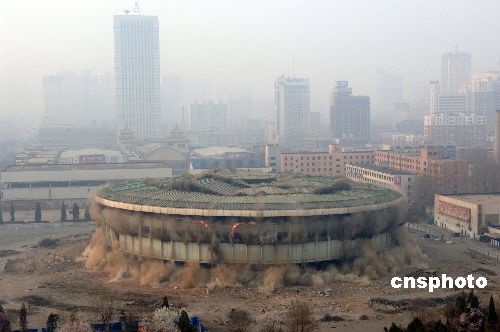 4月12日早上6点30分,辽宁体育馆成功爆破。辽宁体育馆是沈阳市一座外形新潮、设备先进、功能齐全、能容纳万余观众的大型体育馆,主体建筑建于1976年,占地10万平方米。辽宁体育馆建馆以来,曾举办了国际、国内大型的体育比赛和文艺演出2000余场。中新社发 zhangpeng0720 摄