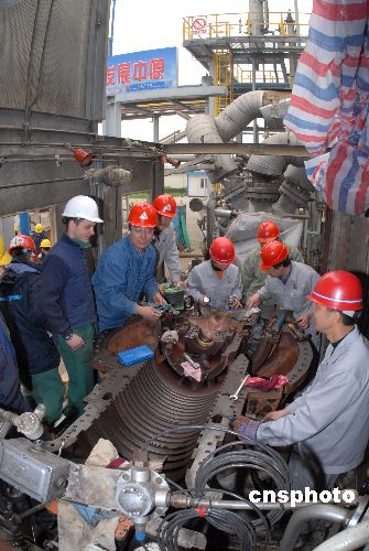4月12日,中原油田对天然气处理厂第三气体处理厂运行设备进行为期20天的安全检修。本次检修范围包括21个大类的156个项目,主要对进口的燃气轮机、膨胀机、仪表控制等相关配套的系统进行一次全面细致的维修保养。检修后,将减少设备出现故障几率,确保天然气处理设备的安全运行。中新社发 胡庆明 摄