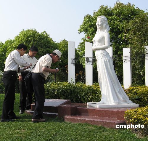 四月十三日,上海福寿园内的“邓丽君”衣冠冢迎来了一批特殊的客人。这批来自宝岛台湾的游客慕名而来,他们不仅惊讶于邓丽君雕塑的幽雅,在现场邓丽君悠扬歌声的陪伴下,深情地缅怀起这位曾经叱咤歌坛的一代美音歌后。中新社发 李佳佳 摄
