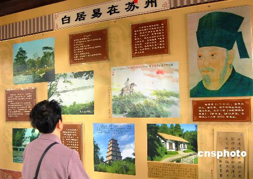 近日,江苏苏州白居易纪念馆建成免费向游人开放。在唐代宝历元年即公元825年,白居易在苏州任刺史,在苏期间写下了许多诗文,并且修筑了阊门至虎丘的河堤,人称白公堤,后发展成繁荣的山塘街。中新社发 邱勇 摄