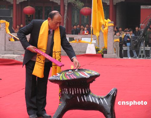 四月十七日,由河南省人民政府与淮阳县人民政府主办的丁亥年公祭人文始祖太昊伏羲大典在河南淮阳县举行。有关方面官员及数千海内外华人代表参加公祭和拜谒活动。图为公祭代表向人文始祖太昊伏羲氏献香。中新社发 张宁宁 摄