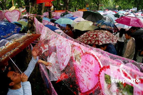 4月22日,湖北宜昌举办“万人相亲”活动。当日降雨,众多单身男女以及不少父母代替孩子前来参加相亲活动。中新社发 王洪007 摄