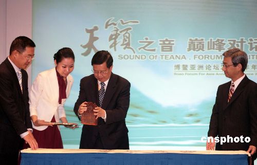 4月22日,博鳌亚洲论坛2007年年会在海南博鳌继续进行。博鳌亚洲论坛秘书长龙永图出席“天籁之音:巅峰对话圆桌论坛”,并参加论坛启动仪式。中新社发 盛佳鹏 摄