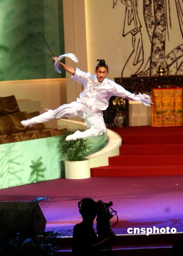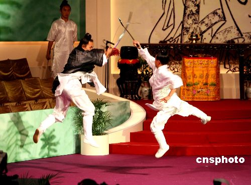 来自武当山的道教功夫团员在日前国际道德经论坛香港闭幕式上﹐表演道教功夫。仅五千言的道德经﹐道出了宇宙的生成、人生的哲理、应世的态度﹐组办者认为国际道德经论坛透过各项活动﹐加深人们对道德经的认识﹐为立身处世获得启迪﹐有利社会和谐。中新社发 王丽南 摄