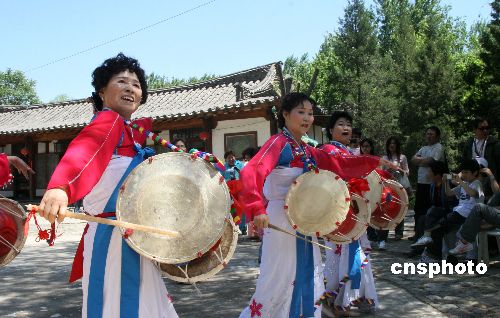 5月1日是“五一”黄金周的第一天,北京中华民族园组织了丰富多彩的民族风情歌舞表演和联欢活动,让游客在感受各民族的传统民俗和文化。中新社发 陈晓根 摄