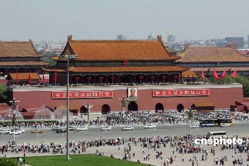 五月三日,北京迎来“五一”黄金周游客高峰,天安门广场游人如织。中新社发 毛建军 摄