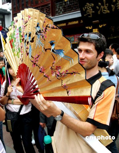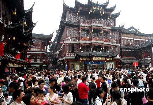 今年“五一”期间恰逢复古改造的上海豫园老街百年华诞,众多中外游客与上海市民齐刷刷地奔赴“二○○七豫园春季庙会”,昔日古朴老街再现当年客似云来的庙会盛景。中新社发 汤彦俊 摄