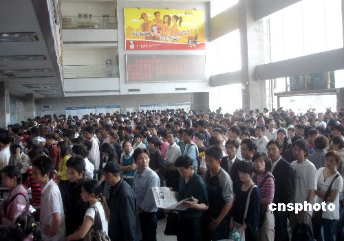 5月6日,苏州火车站售票厅挤满了排队购票的乘客。“五一”黄金周即将结束,苏州火车站迎来客流返程高峰。当天苏州火车站客流量将达6万人次以上。中新社发 王建康 摄