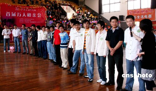 5月6日,集体相亲会的单身男孩在推介自己。当天江苏连云港市妇联组织“首届万人相亲会”,为单身男女搭建起沟通、交流的平台,吸引了数千单身男女及其相亲团参加。相亲会成为连云港“五一”黄金周里最浪漫的一幕。中新社发 耿玉和 摄