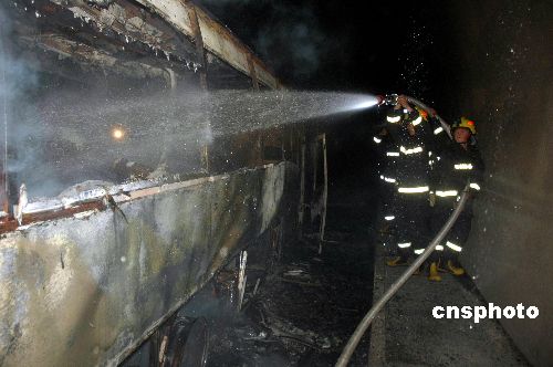 5月6日,重庆市沙坪坝区渝隧高速路大学城隧道内一辆客车突发大火,幸未造成人员伤亡。中新社发 郭晋嘉 摄