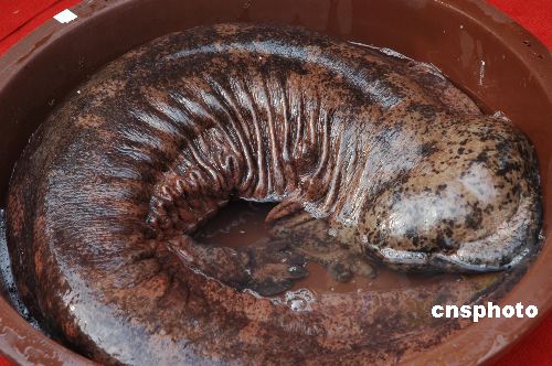 5月10日,湖南省第四次大鲵(娃娃鱼)增殖放流活动在娄底市新化县梅山龙宫风景区举行,160余尾娃娃鱼幼苗当天被放流梅山龙宫岩洞内。该活动是由湖南省畜牧水产局及湖南省大鲵保护与发展协会组织承办的。大鲵俗称娃娃鱼,是中国特有的珍惜两栖动物,有3亿5千万年的进化史,是与大熊猫、白暨豚相媲美的活化石,1988年被列为国家二级保护动物,被国际贸易组织列为一类濒危物种。湖南省作为大鲵原产地,在20世纪80年代前,野生大鲵资源丰富,遍布张家界、湘西、怀化一带。但是,近年来,因受环境污染和过渡捕捞等因素影响,大鲵野生资源成逐年下降趋势,为了恢复大鲵野生资源禀赋量,促进生态的良性循环,恢复大鲵在湖南省的带状分布,湖南省畜牧水产局、省大鲵保护与发展协会组织各驯殖单位积极参与大鲵人工增殖放流,已经先后在张家界等地成功组织了三次放流活动。中新社发 郭国权 摄