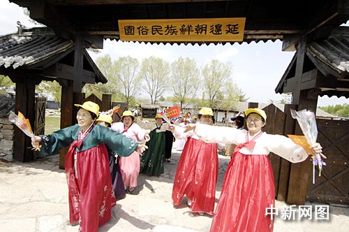 5月13日,吉林延边朝鲜族自治州29名年逾80的“老妈妈”,来到延边民俗园共同欢度“母亲节”。秦俑 摄