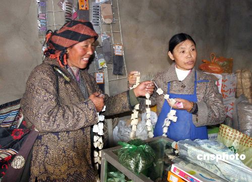 西藏茶马古道上的千年重镇贡嘎县杰德秀虽然濒临机场,传统交易依然红火,买卖双方均以藏产品为主。中新社发 柳俊武 摄