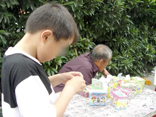 5月31日下午,在浙江苍南龙港镇一些小学附近,有商贩向学生出售“儿童彩票”。据悉,不少学生把吃早饭、中饭的钱省下来去买彩票。 中新社发 张炳钩 摄
