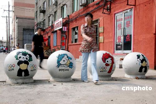 6月5日,一种新型“奥运福娃”护栏亮相沈阳街头,造型新颖独特,为沈阳增添新景。中新社发 赵敬东 摄