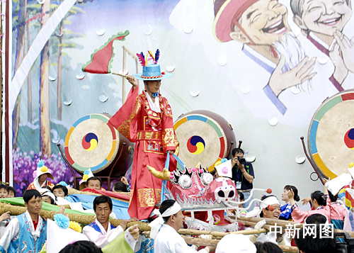 6月6日上午,2007“中国朝鲜族第一村”民俗旅游文化节,在长白山脚下的安图县万宝镇红旗村拉开帷幕。当日,充满浓郁朝鲜族风情的民俗歌舞表演、朝鲜族特色美食展及民族传统体育比赛,吸引了众多游客。图为开幕式上精彩的朝鲜族民俗歌舞表演。秦俑 摄