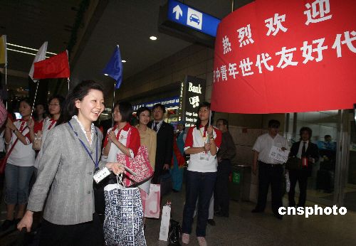 由日本前首相中曾根康弘率领的日中青年世代友好代表团六月十四日分乘五个航班抵达上海浦东国际机场,开始为期一周的“中日青年世代友好中国行”活动。中新社发 宗馨 摄