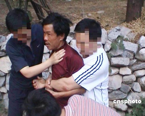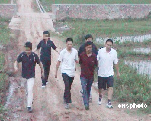 6月16日下午,震惊全国的山西洪洞县“黑砖窑”案件逃逸的包工头衡庭汉,在其老家河南省浙川县盛湾镇衡营村毗邻的湖北省丹江口市石鼓镇盘道村五组被湖北十堰市警方抓获。中新社发 袁野 摄