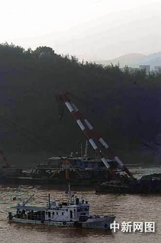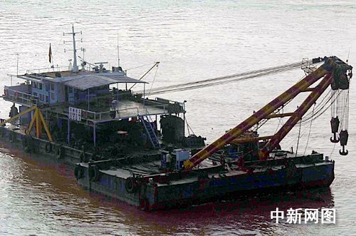 19日,广东海事局等部门对九江大桥坍塌事故落水车辆和人员实施打捞进入第三天。目前广东九江大桥坍塌事故河段江河水位暴涨,水流急,江底浑浊,能见度极差,加上落水车辆可能随急流发生移动,给搜寻落水车辆造成了困难。刘卫勇 摄