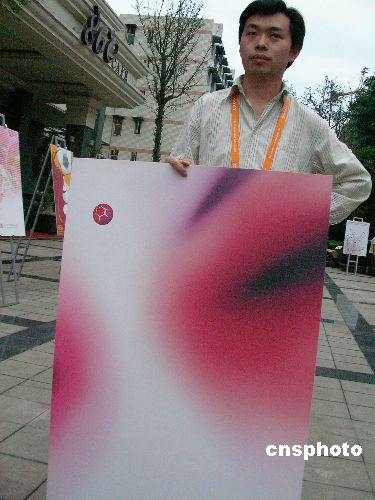 6月19日晚,女足世界杯“国际足球海报大展”金银铜奖在成都揭晓。经评委严格挑选,从近千件参评作品中产生了三件金奖作品。图为由成都丙火机构创作,以京剧脸谱为背景的《美人痣》。中新社发 杨杰 摄