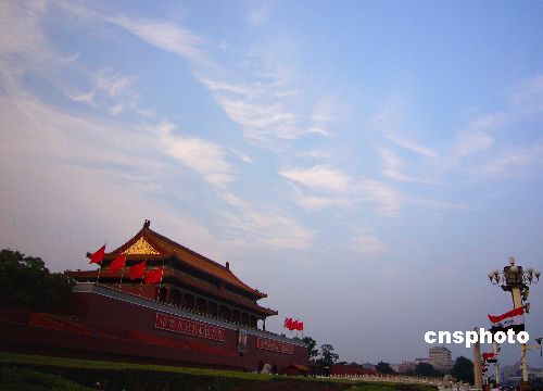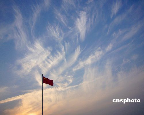 6月21日,持续数日的阴霾天终于告别京城,傍晚时分,北京碧空朵朵祥云飘浮,令人赏心悦目。中新社发 玉龙 摄