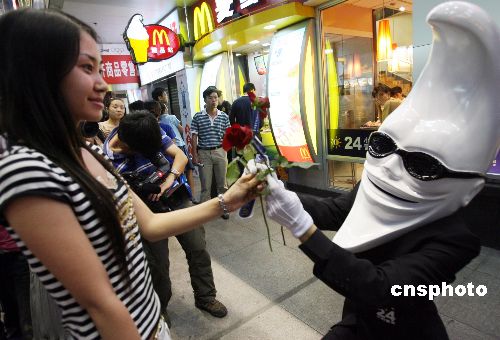 6月29日晚,北京麦当劳举行仪式宣布加大24小时餐厅业务的推广力度,旗下近半数餐厅加入24小时营业的行列。曾风靡美国、新加坡等地的24小时大使“月亮人”首次亮相中国大陆,并在上海、北京、广州、深圳同步启动月亮人巡游活动。中新社发 钱兴强 摄
