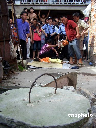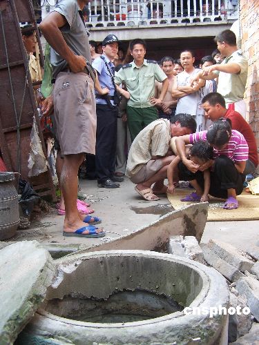 7月9日13时30分许,在浙江温岭横峰街道西洋村,一名来自江西修水的5岁女孩不慎掉入直径为50多公分的水井中。经过警方20多分钟施救,小女孩被打捞上来,但已溺水身亡。中新社发 江文辉 摄