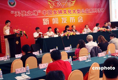 | 7月12日,由中国红十字基金会以及美国联合商业协会主办的“天使之缘”中国女娲文化大型公益系列活动在北京钓鱼台国宾馆正式启动,活动将于9月下旬在河北涉县女娲广场举行。是次活动以“女娲精神”为内容,传达“女性、儿童、爱心、和谐、经济发展”的主题,通过各种演艺形式及文化交流,向社会广泛募集“红十字天使之缘”重症和孤残儿童救助资金和其他公益救助基金。图为该活动北京新闻发布会。中新社发 钱兴强 摄
