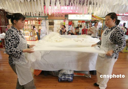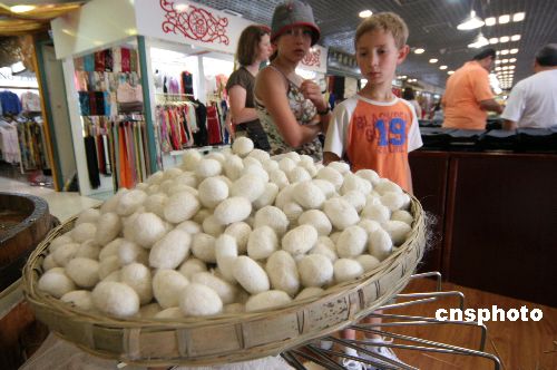 2007年7月17日,一条“百米丝绸街”在北京秀水街市场亮相,吸引了不少顾客眼球。经过近一个月的重新规划,“百米丝绸街”开始在秀水街市场三层演绎传统文化。中新社发 吴芒子 摄