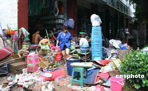 7月20日,遭遇百年不遇洪灾袭击的重庆璧山县逐渐回复往日的平静,洪水从璧山县城退却,人们开始重返家园。中新社发 邹辉 摄