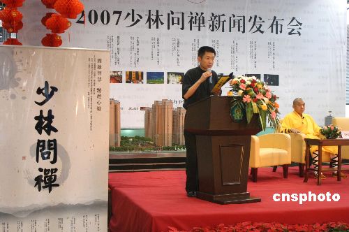 7月22日上午,“少林问禅”新闻发布会在郑州举行。从会上获悉,一场主题为‘开启智慧,点燃心灯“的“少林问禅”活动将于7月27至28日在河南嵩山少林寺举行。中新社发 王中举 摄