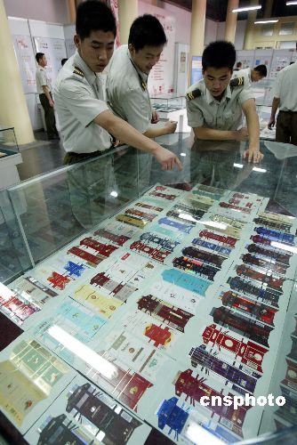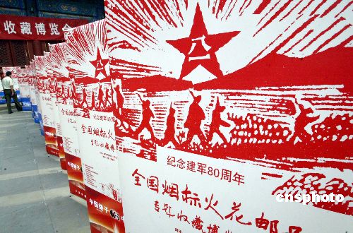 七月二十五日,“我们的队伍向太阳”专题烟标火花邮品展在北京举行。该展览利用各个时期的收藏品及反映的内容,展示出一部完整的人民军队成长史,同时展出的还有军事题材的连环画、徽章等。专题展由中国收藏家协会、贵州中烟工业公司等共同举办。中新社发 任海霞 摄