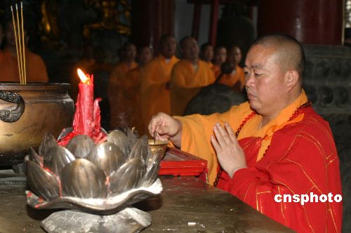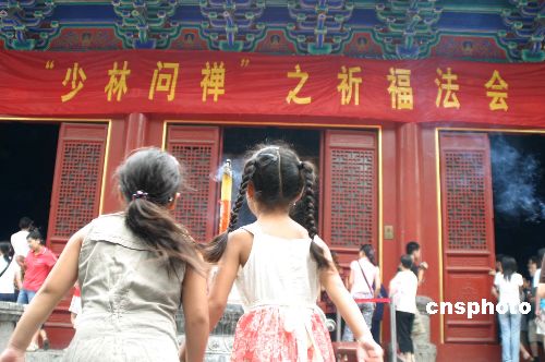 7月29日上午,2007“少林问禅”之“祈福法会”在中国嵩山少林寺大雄宝殿开坛。本次法会由少林寺方丈释永信、印度高僧圆度达摩等主法。中新社发 王中举 摄