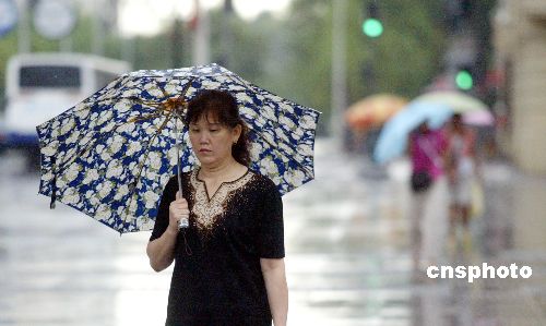 7月30日夜至31日早晨,黑龙江哈尔滨出现大范围降雨,降水给市民出行带来不便,但对缓解农村旱情具有积极意义。松花江哈尔滨段水位略有上涨,达112.99米。中新社发 靖阳 摄