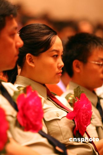 七月三十一日,北京警方举行庆祝建军八十周年表彰大会,对北京市公安局现役部队的先进集体及个人和公安消防官兵予以表彰。会后由官兵自编自演了文艺节目。中新社发 任海霞 摄