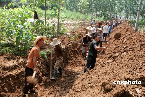 7月29日,山西阳城芹池镇出现特大降雨,降雨量达240毫米,占全年降雨量的1/3,造成当地河水暴涨、民房倒塌、桥梁中断、水井水利设施淤积、农作物冲毁并有泥石流形成。灾情发生后,党员干部带领群众抗灾自救,恢复生产和重建家园。中新社发 马宏泰 摄