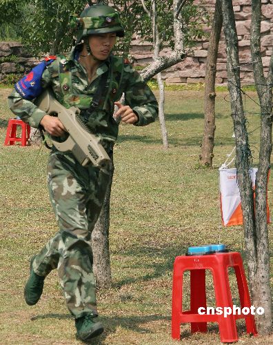 二00七年八月一日,正在福建省武夷山参加第十四届全国定向锦标赛的军队选手,参加一场别开生面的野战定向比赛庆祝节日。中新社发 周文杰 摄
