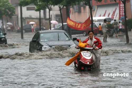 8月2日,郑州暴雨之后,人们和车辆在水中艰难前行。当日上午,郑州市再遭暴雨侵袭,到处水流成河、积水成泽,给郑州市民的日常生活和出行造成极大不便。中新社发 刘书亭 摄