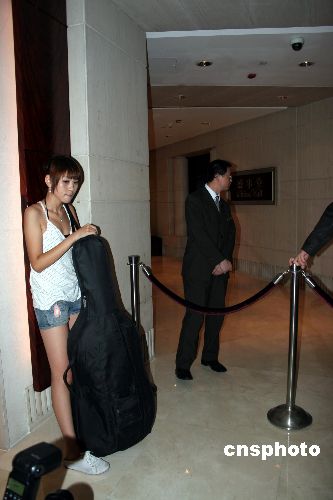 八月六日,“小巨人”姚明在上海举行神秘婚礼,申城坊间再度掀起一股“姚明热”。图为姚明在上海黄浦江畔的香格里拉大酒店盛事堂的婚宴现场大提琴少女到场,将演绎弦乐四重奏《蓝色多瑙河》等伴奏曲,表示祝福。中新社发 许晓青 摄