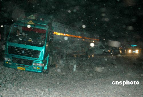 8月12日晚,312国道新疆吐鲁番段三十里风区遭平均10级大风袭击,300多辆车、1500多人被迫滞留风区。部分车辆玻璃被大风吹起的碎石击碎,所幸无人员伤亡。吐鲁番-乌鲁木齐-大黄山高等级公路封闭。吐鲁番地区启动紧急重大突发事件应急预案,当地公安、卫生、交通等部门人员赶赴现场进行救援。中新社发 刘健 摄