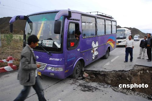 西藏三一八国道日喀则路段受八月十三日晚强降雨影响,部分公路被冲毁,十四日早上交通一度中断,一些游客和通往阿里地区、尼泊尔的货运车辆受阻。中新社发 陈文 摄