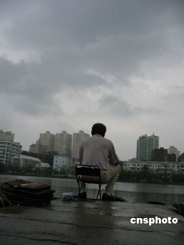 受“圣帕”台风入境影响,近两天来,江西各地大雨倾盆。江西气象部门预计,“圣帕”在江西境内还将滞留两天,江西各地强暴雨天气还将持续。 图为八月二十一日南昌天空乌云密布,一名钓鱼爱好者在暴雨间隙独自在市内一片湖区垂钓。中新社发 吴庆才 摄