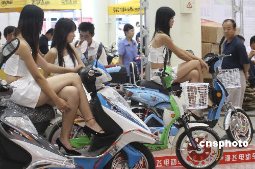 8月25日,济南秋季电动车展上的车模。2007山东电动车暨中国(济南)秋季电动车展览会于8月24日到26日在济南舜耕国际会展中心举行,本届展会的一大亮点,是以展促销、展销结合、相得益彰,展览吸引了不少市民前来观看。中新社发 俄国庆 摄