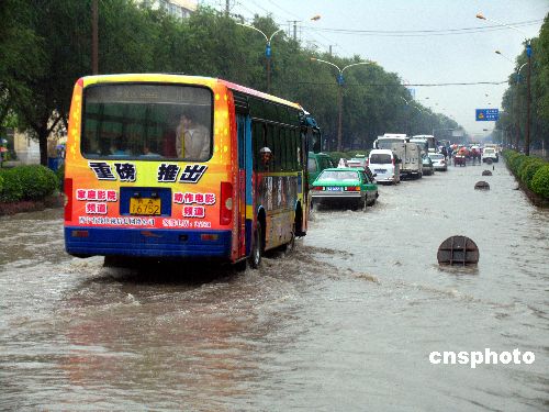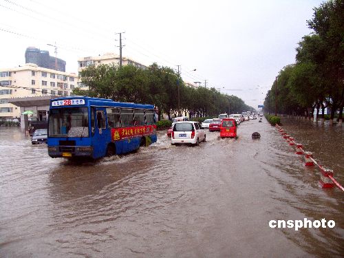 8月30日,一场强降雨使青海西宁市区部分街道出现严重积水,给出行车辆和行人带来不便。中新社发 李昕 摄