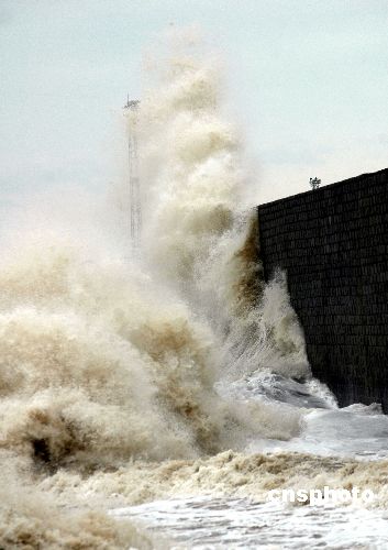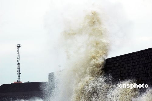 9月20日,2007年第13号强台风“韦帕”影响到山东日照,日照海滨港口浊浪高。中新社发 扬文 摄