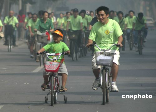9月22日是全国无车日。在山东济南,年仅5岁的小乔阳随同爸爸一同志愿参与“绿色交通”宣传活动。中新社发 张勇 摄